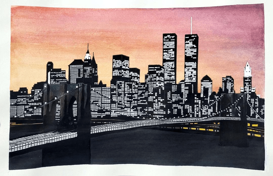 Ilustración: Puente de Brooklyn—- por Alejandro Picciolato de la Fuente. (Dibujo ganador del concurso BridgesOctober 25)